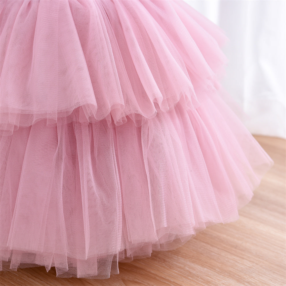 Beautiful pink coloured multi frill flower girl dress for beautiful princess