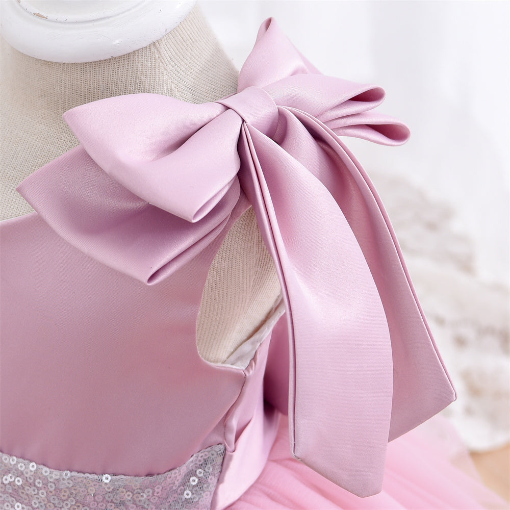 Shoulder and back of the dress is decorated with bow