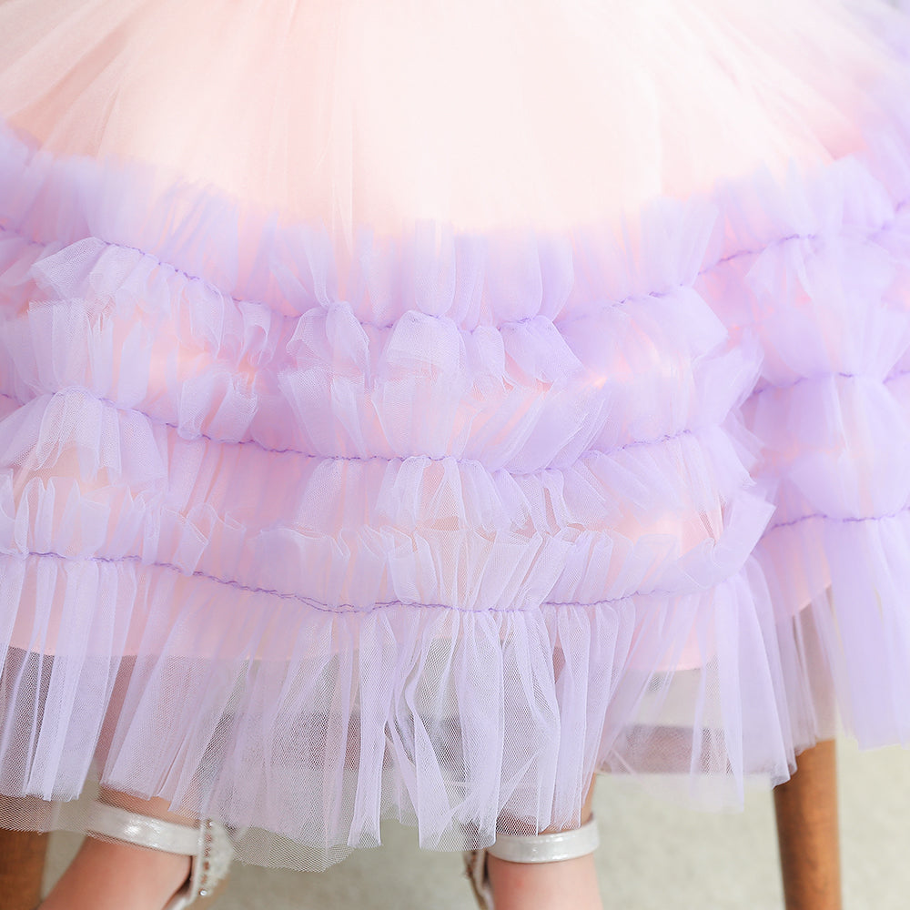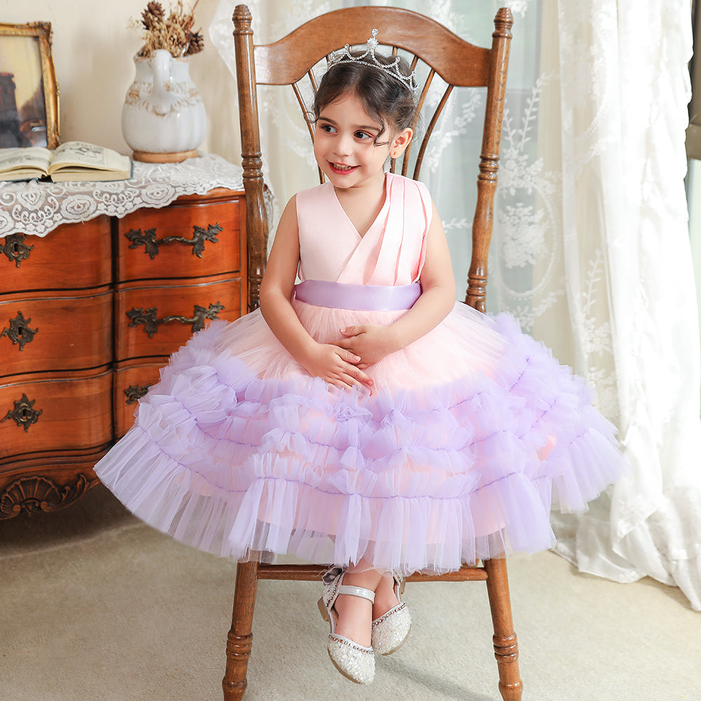 Beautiful pink and purple mix coloured multi frill flower girl dress for beautiful princess