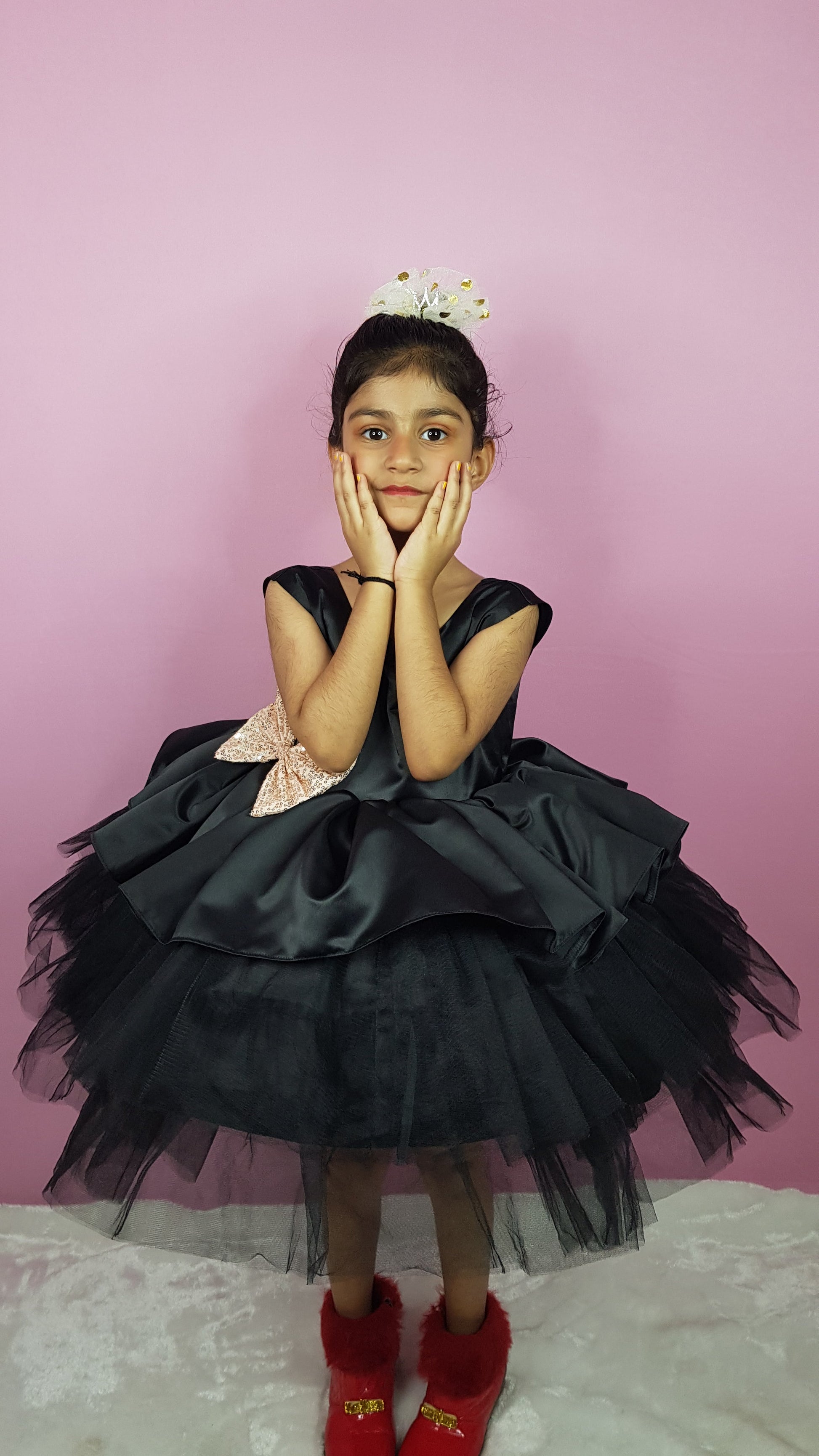Beautiful black maroon coloured sleeveless dress for little princess.